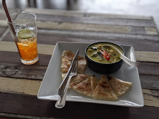 The menu is fairly varied but I have only had a couple of items, which are so good as to make me keep getting them every time. I'll start with the Green Curry, which is the first dish I had when I originally came here. It is incredibly tasty and comes with an order of Roti bread. Both are perhaps the best I've ever had.
