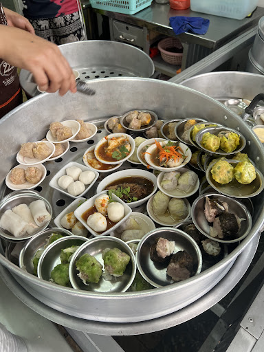 Great place to have dimsum! Really good and cheap! Restaurant owner and staff were super friendly and kind, easy to converse with as well. We asked the owner for his recommendations, and he kindly explained and showed us what he thinks we would enjoy. You order at the front with all the dimsum showing (as seen on the photo) and then they will sit you down at a table and serve all your orders. There’s complimentary hot tea (you can refill for free) and they also sell a few different hot and cold drinks (Thai milk tea, black tea, etc.)