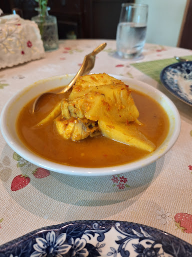 Firstly, I must start by saying the setting is stunning. Two of others shared the pineapple fish curry with a portion of rice each. We had a lot of restaurants to try so we only got one dish to share but the restaurant recommended two as they said it wouldn't be filling and typically another dish is had that will balance well with the curry as it is quite a spicy dish. The pineapple and curry were a great combination of tangy and spicy. It was quite a spicy dish but I like spicy food. Also, the fish was beautiful, cooked perfectly and very meaty. I would recommend having this with a sweeter tasting dish to contrast well with the flavours. Try to go to this restaurant with many people so you can order a lot of dishes to try them, but keep the cost down if you are on a budget as the dishes are quite costly. The price matched the experience so I was happy. The only addition I would make is having some more vegetables in the curry as there was pineapple and a bit of fish, but a lot of watery curry so we weren't sure what to do with the rest of it. I drank the rest using a spoon,...