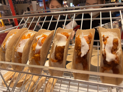 Pretty good snacks, very easy to eat and enjoy. They’re flat, very thin pancakes which are made on site (you can watch them expertly cook them when you order). Very crispy thin crepes which are a delight to eat.