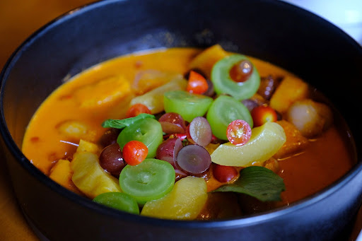 🦆 แกงเผ็ดเป็ดย่างรมควัน ในสวนผลไม้ 520 บ. ทางร้านจะนำเป็ดไป Sous vide และนำไป smoke เนื้อเป็ดนุ่ม รมควันมากลิ่นหอมๆ ไม่มีกลิ่นสาปเป็ด ในแกงจะมีผลไม้หลายชนิด เครื่องแกงรสเข้มข้น เมนูนี้คุณแม่ชอบมาก