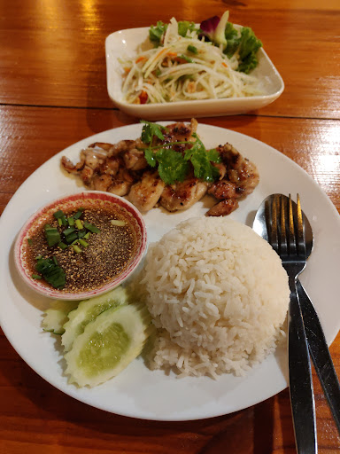 Read moreWe ordered beef Panang curry, fried shrimp curry, grilled chicken and mango juice. We liked everything, the taste was great and service was good. The workers arenât super friendly but they do a good job and are very attentive, we laughed with ours because we accidentally kept ordering the items that were clearly crossed off as no longer available me. If youâre a tourist itâs good that the menu has pictures and you can take your time writing your own order. Both curry dishes were delicious and the chicken was lovely. Next time we would order chicken curry instead of beef because the beef tasted chewy as if maybe over cooked. The juice was fresh, no added sugar which we prefer. The portions were good and price reasonable. We will be back and definitely recommend if youâre in the area. The restaurant is located conveniently on a corner and it feels fresh with air con inside. Also,...