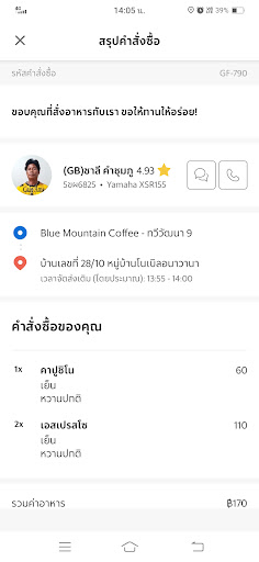 สั่งทางแกรปแกรปเเจ้งจ่ายเงิน3เเก้ว ได้2เเก้ว...