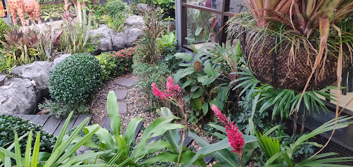 An amazing looking cafe with lots of plants, stream filled with big koy fish I believe nice escape in the back in the shade, air conditioning, next to a petrol station and 7-11. A very Amazon feel to it. A bit overpriced but very nice staff and can get free wifi just ask the staff they will be more then...