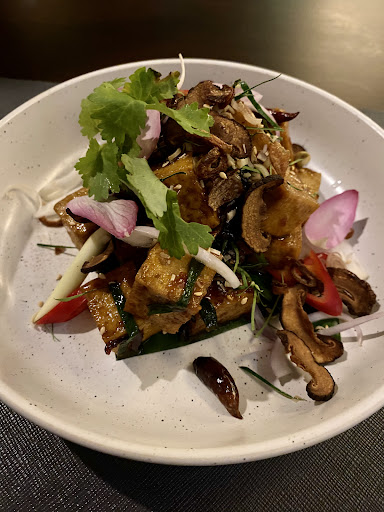 Negative: We got three different dishes: Stir-Fried Shiitake Mushrooms all ingredients individually well done, but didnt really make sense all together