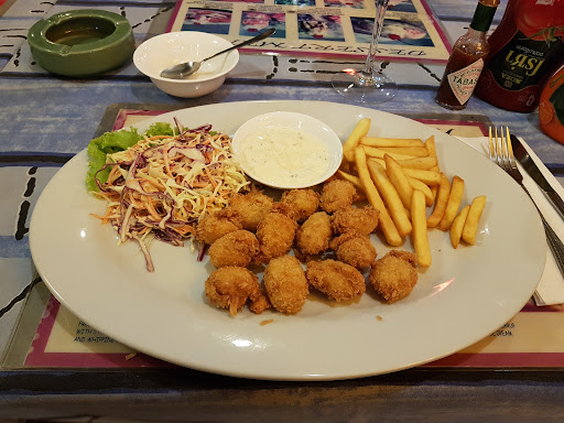 Not having eaten since the morning, I was still hungry, so I ordered the "scallop fritter platter". This plate came with breaded fried scallops, french fries and a kind of coleslaw. It was pretty good. I remembered to take a photo.
