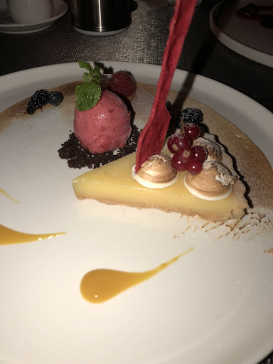 We then waited 1 hour for the soup course (which is typically pre-made and sitting in a warmer) to be served. Though it had a piece of lobster in it, the soup was underwhelming in taste and watery in texture. It took us about two minutes to finish, only to wait another twenty minutes to receive our palette cleanser, a small scoop of raspberry sorbet.