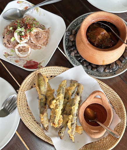 We ate mostly at proper local places like Dang Seafood and Jae Gloy; this place had the benefit of a super comfortable and aesthetic environment (instead of road pollution at those other places), but still had pretty authentic thai food. We had a very good fish salad and a herbal pork soup.