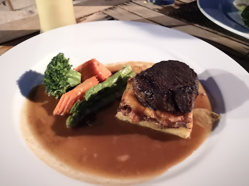 Read moreอาหารอร่อยค่ะ สั่ง 1.สเต็กปลากระพง 330 บ เหมือนปลากระพงทอดหรือย่างเกลือ กะครีมซอส แล้วก้มีมูสมันฝรั่ง ปลาสดค่ะอร่อย มูสมันฝรั่งตัดเลี่ยน สดชื่น เวลากินกับผัก 2.สเต็กเนื้อเทนเดอรอยด์ 5xx บ. เนื้อหอมอร่อยค่ะ สั่ง medium well done แต่ได้เป็น well done เนื้อก้ยังหอม ไม่แข็ง ที่อร่อยมากๆ คือ ด้านล่างของเนื้อ เป็นมันฝรั่ง สไลด์มาบางๆ โปะด้วยชีสหนาๆ ด้านบน คือดีมาก หอมอร่อยนุ่ม ดีงาม 3.mocktail มี happy hour ซื้อ 1 แถม1 ของทุกวันช่วงเย็นค่ะ mocktail 180 ส่วน cocktail 250 บ ที่สั่งมาเปน pina mocktail อร่อย หอมหวานเปรี้ยวนิดๆ สดชื่น 4.ขนมเคลมบุเร หวานไปหน่อยค่ะ อันนี้ไม่ค่อยเท่าไหร่ 5.พนักงานบริการดีค่ะ มาถึงปุ๊ป รีบเข้ามาหาเราทันที ตินิด เดี๋ยวว่าอวย อาหารช้าไปหน่อยค่ะ หิว 555 แล้วก้มีแมวมากวนใจตอนกิน นอกนั้นดีงาม หนาวมากกก...