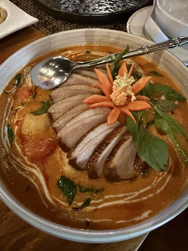 Today we ordered chef recommended menus for two which includes 9 menus with 1,000 THB per person!!! (That's 100+ THB for each dishes good value) Scallop galangal soups (love it) Tiger prawn Satay (my favorite dish of the day) Crispy shrimp with wasabi sauce Tarta salmon avocado (my gf love this one) Mojito sorbet After all that the main course serve!! Wagyu kra paw Chu Chee salmon Cucumber with eggs (but I was allergic to cucumber so the chef change it to green pea, which my gf also love this one) Strawberry cake