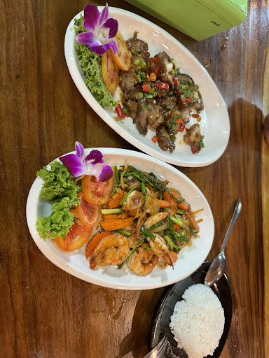 It was the busiest restaurant near our resort so we tried. People (mostly foreigners) keep coming so the food must be good, we thought. Big menu. From Thai food to spaghetti, burger, dim sum... Hmmm.... I am always a bit skeptical when the menu has lots of pages and varieties. We ordered a Spicy Stir fried shrimp, Salt and pepper Crispy pork and Grilled pork neck. Shrimps was very good, 7 shrimps with a lot of carrots and veggies. It was the best of three dishes. This was the reasoning for the four star and makes me think that I will come back to try something else. Flavour of crispy pork was good but crispy pork is NOT crispy. It taste a bit old and chewy. 'Pork Neck' was NOT pork neck. The texture is more like a piece of pork chop. It was reddish colour and a bit gamey. Flavour is a bit off. Again I suspect it's an old piece of meat marinated for a long time in the fridge. It does not taste fresh at all. Dipping sauce was spicy but not very good. Although I don't like the two pork dishes because of meat quality. I think I will go back and try something else. Maybe a curry? Update. Raining so ate there again. Ordered same Spicy shrimp Stir fry, Red Curry Stir fry Pork, Seafood Pad Thai and Green Curry Beef Fried Rice. Shrimp again very good. Pork a bit tough but flavour is good. Seafood in Pad Thai is very fresh and dish tastes excellent. Not overly sweet. Beef in fried rice is also a bit tough but flavour is good. I think they habitually overcook their meat. Service is really slow though. Waited 45 mins until first dish appears. Update 2. Yea ate there again because three nights in a row we drove around and every other restaurant in the area and even lonely beach is dead but this one. Fried spare ribs with garlic is good. Tom Kha Gai is good but chicken not the freshest. Steam young coconut curry with seafood is not so good. Left my stomach queasy all night. Think we don’t have much choice until we move to Kai Bae beach as there’s really not any other restaurant than looks inviting and BF prefers not to ride too far...