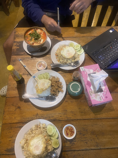 The owners are very friendly and welcoming. So we wanted to try this place although it was very quiet during lunch time. We had the Penang curry, Thai omelet, rice and a fresh coconut. The coconut was delicious and fresh. However, the curry was not Penang style and hardly any sauce. The pork was chewie and overcooked. Most disappointing was the omelet, it was nothing like the Thai version, just a plain one with some herbs. In addition, the food was overpriced in relation to the quality. The restaurant itself is fairly clean and comes with a nice breeze in addition to the powerful fans. It feels relaxed to sit there, even only for a drink. Just a below average Thai restaurant, so so food. Because of the friendly owners, we give 3 out of 5 stars. But not recommended to...