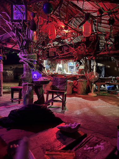 Die Bar: Diese Bar ist reine Kunst sie wird seit Jahren von dem Besitzer erneuert...vergrößert... verbessert dazu benutzt er treibholz was das Meer ihm bringt außerdem auch Plastik Müll hier wird alles als deko benutzt und das sieht und merkt man... Man kann stunden in der Bar sitzen und sieht immer wieder neue kleine Details einfach zum verlieben