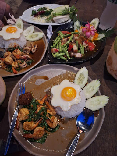 Read moreI’m Thai on vacay and stopped by to have dinner at the restaurant I am not recommended this restaurant at all I was sooo disappointed as the Thai food is not Thai taste not Thai original tasteat all I ordered stirred fry sea food with basil all I can taste was just the strong black soy sauce nothing else and also I have the long bean salad with crispy pork belly how disappointed it’s really not what I ordered or expected. The service was not the best all the waiters and waitresses was too busy chatting to each other and not pay any attention to customers as I called for them many time . Only one good thing was the vibe the atmosphere was great nice little beach front restaurant. I hope that they think about improving it or do something about it...