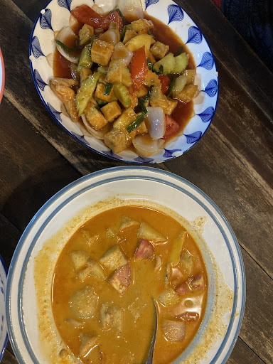 Read moreWe ate here twice as the nearest place to where we were staying that has a dedicated vegetarian menu. Sweet and sour tofu was particularly nice. However on our second visit we found chicken pieces in both our tofu sweet and sour and our tofu massamam. Been trying not to look too closely at cooking processes whilst in Thailand but how you could have chunks of chicken turning up in completely different dishes really raises some alarm. They made us fresh versions (we think) and they were very tasty but would...