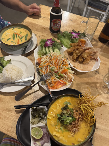 Read moreTried this place based on their reviews and it did not disappoint, the venue itself it clean, nice decorated with a mix of indoor/outdoor seating options. The staff were brilliant too, friendly and responsive service and couldn’t do enough for us. Now the food 😍, one of our favourite reasons for coming to Thailand is the food. This was the first time trying Khoa Soi and it tasted as good as it looks, we had a seafood Penang curry also delicious and great amount of seafood in the serving! Side dishes of shrimp Papaya salad and also some fried shrimp, as you can see great portion size and value for money. They also ask for spice levels with your food too, we went ‘a bit spicy’ 😅 and this was perfect for us! We had this with 2 Leo’s and it came...