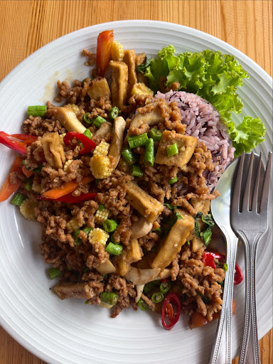 Read moreThis place is amazing. Everything is so fresh and delicious. The pad krapow was incredible, I missed these flavors so much as the last time I tried it, I was a meat eater and the 7-eleven version doesn't come close. They have so many amazing vegetarian Thai options, I can't wait to come back and try them. Thai food is from 90B to about 180B and then western food is 100-200B. The coffee here is very good too 👌 The breakfast menu looks amazing, I was eyeing out the avocado toast and the portion was massive. All the portions are huge, I couldn't finish my meal. Definitely...