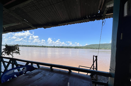 This restaurant is built on a raft that floats on the Mekong River. There are a few others like this in the area (you can tell from its name, Phae Aharn Araya that it is built on a raft; the prefix แพ "phae" on the name means "raft"). They serve the standard Northeastern (Isaan) Thai food and light Thai lager beers. The service was good, and the atmosphere was nice, but be careful boarding the raft. The small foot bridge is rickety and close to the water level. They mostly get Thai customers, and so it will be easier if you can speak Thai, or are at least able to order food in Thai. They have fans to help cool off and keep the mosquitoes away, but the mosquitoes are persistent, so bring repellent or be good at...
