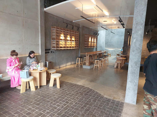 Read moreThis is a new coffee house in Udon Thani, just down from the Landmark shopping center. It's claim to fame is a tree in the back in an atrium inside the shop. The coffee is good but the cups are on the small side for the price. The other interesting thing about this shop is that about half the flooring inside is gravel. While this makes sense for allowing the tree to drain water but they chose to use the gravel throughout the shop, including the toilet. You can see the electric outlet under the table is in the gravel. And the toilet flooring is completely gravel. Since gravel can't be mopped, I'm not sure how they sanitize it at the end of the day. But it is very popular. It gets quite crowded during the middle of the day on weekdays. It must be absolutely mobbed...