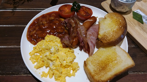 Read moreA lovely little cafe with an air conditioned indoor area, a covered terrace and some street tables. Pleasant European radio playing in the background and some charming antique touches add to the ambience. The set farang breakfast at 140 Baht was filling and the bacon and scrambled eggs were perfectly cooked. Buttered toast is included as are beans, ham and mushrooms but the hot dog style sausage might not suit all farang tastes. The eggs Benedict was delicious with perfect runny egg yolks. Coffee and juice is extra cost. Cakes and scones...