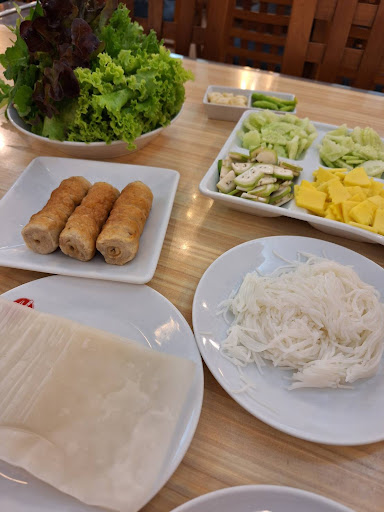 If you want to experience authentic Vietnamese food, I totally recommend this place. What makes it special is not only the restaurant itself but also the shop, which is full of a wide variety of Vietnamese products — from clothing to food. It really adds to the atmosphere and makes you feel immersed in Vietnamese culture. The place is quite big and simple, yet still very welcoming. One of the things I really appreciated is the open kitchen: you can actually see what’s happening inside, which gives a sense of transparency. The very first thing I noticed was the cleanliness and the care in preparing the dishes — they even cooked food that wasn’t listed on the menu, which was a nice surprise. Another unexpected but very useful feature is the drive-thru service, something you don’t usually find in places like this. My favorite part, though, was the shop and its wide selection of Vietnamese souvenirs. It truly felt like being in Vietnam, without even having to...