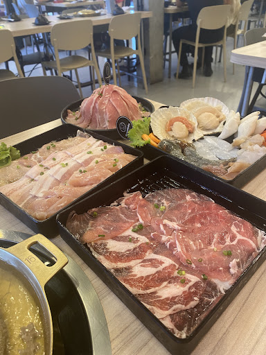 🥩 Quality Ingredients: The meat was incredibly fresh, especially the marbled pork and chicken slices. The seafood platter was packed with scallops, prawns, squid, and more—all super fresh and clean.