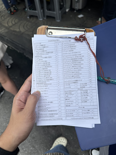 The menu is available in both Thai and English. Once seated, diners are handed an order sheet to choose their dishes, which are quickly prepared and brought to the table.
