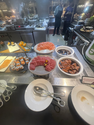 It’s the same place where we have breakfast. All the stations are live meaning you have to show them what you want and they will cook it for you. However, I felt some items could have been prepared from before like in regular buffet place. Some staples like fried rice, noodles should be there without having to wait. They had delicious steak made to order but there were no mash potatoes, or fried or baked potatoes that go very well with steak. Even fried rice you have to order and it wasn’t very good. I felt Intl. menu was limited.