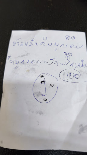 Crispy Pork Alley and in an alley in Bangkok , it is! The smell of frying pork permeates the air as you pass Auntie's place. Fully occupied alley seating steered us inside to the only unoccupied table remaining in the small , 10 table dining room. Thankfully , the fan was on, providing some teeny relief to the 95-degree Bangkok mid-April heat. The menu is short and sweet.....crispy pork!......served in some fashion with various add-ons. Service at lunch was decent. I ordered a plate of crispy pork and 1 plate of crispy pork fried rice. Both dishes showed up in about 10 minutes . I grabbed a bottle of ice water out of the cooler. The crispy fried pork was excellent. Crispy, crunchy, and a sliced for easy eating, this I'd the best crispy pork I've eaten to date. Just enough pork meat and fat ratio covered by the nut brown layer of seriously crunchy skin , made for perfect porkaholic indulgence. DELICIOUS!. The pork fried rice, on the other hand , was too greasy and only had limited crunchy pork bits mixed into the fried rice. Prices are still reasonable , even considering their gaining popularity on YouTube and Instagram channels. Handicap ♿️ doable Restrooms....hmmmmm. probably not. Final take... Highly recommended, but out of my 2 choices, I would stay with simple servings of just the crispy, crunchy, delicious...