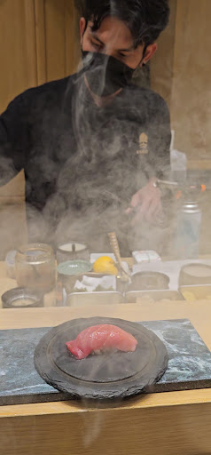 I came for the session after my original arranged one. Seems i was the only guy going for the full course. The chef serving me has a cool look vibe and speaks very softly. whoever you are, thank you for taking care of me. First look when they cut the fish, i wasnt thinking much highly of it. But when it goes into your mouth, u will regret what you think. They do better than some of the japanese chefs around. The number of different flavors exploding, freshness and the chef and waitress attentiveness is remarkable.