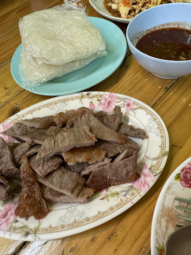I lived in Bangkok for a year and went to this place weekly, not kidding lol. The grilled pork neck and beef brisket will remain in my memory forever and that spicy sour soup is probably the nicest soup you will ever have in your life. Staff all friendly and nice, one particular queen with dark short hair always used to help us because thai mai mi (we can’t speak good Thai). The chicken wings are so crispy so get them if you’re into that. The sticky rice slaps too, especially dipped in the godly chilli sauce they give for the meat. Any of the papaya/corn salad items also amazing. Even the raw meat salad was good, as westerners less used to raw meat it was greatly enjoyed. Manaw soda also slaps (fresh lime soda) and the secret beers ahahah! Eat here you...