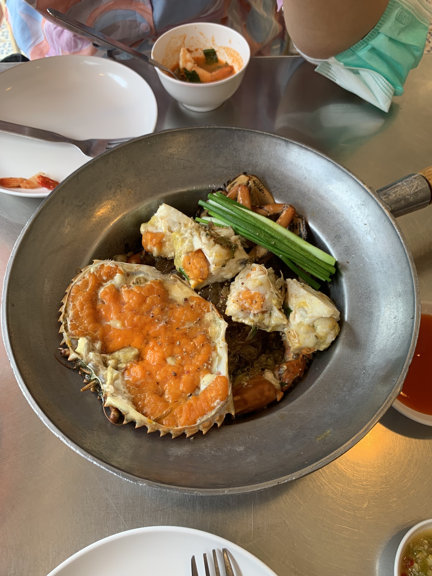 ◾A classic Chang beer to start off the lunch sounded like a perfect beginning. ◾Fried oyster omelette which I love the still runny texture of the egg, plus the not-so-stingy amount of oysters. ◾Roasted Roe crab with glass noodle is a must order as the glass noodle was soaked with the sweetness ◾Grilled River Prawn had a few sizes to choose from which we opted for Large. No regret as the delicious creamy roe made it worth paying the price. ◾Blanched cockles - also known as hoy kraeng in Thai, this is one of the popular street food. The morsels were done medium and the chilly sauce was very addictive.