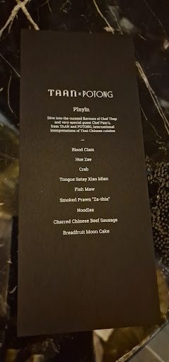 We were fortunate enough to have booked our meal during a collaboration between Taan and Potong. We were already excited to see what Taan had to offer being the only other fine dining experience we chose alongside SORN so to hear Potong Chef Pam would be working on the menu was even more exciting. My wife who takes each dish as they come was less enthused, until the first dish came out. Everything about this experience was perfection. The setting, atmosphere, service and tableware were all spot on. The sommelier assisted us with choosing a Thai white wine to completement this one off menu and it worked perfectly. Staff were attentive and swift without rushing. A perfect level of service. Our two standout dishes were the Chef Pam crab dish and Chef Thep pork tongue Satay. Both have earned themselves a very well earned top 5 worldwide dish list from my wife and I. Simply superb, based on these two dishes alone we will be praying these chefs open a restaurant in London in the future so we can regularly visit! It was great to have the chefs personally explain each dish and their inspiration behind them. A highpight for me was Chef Pam pointing out the window when explaining an inspirational soup from China town. Each of the 9 dishes really worked on my pallette. Either perfectly balanced and satisfying or challenging and enjoyable. Such a rarity in a tasting menu! My wife wasn't a huge fan of the beef sausage or durian-esque dessert but that's never a reason to complain. The whole point of a tasting menu is to take you out of what you would normally order and see what comes up! If you ask me TAAN simply does not currently get the recognition it deserves which makes it the perfect...
