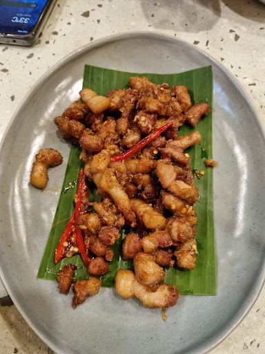 Another dish worth trying is the Crispy roti served with Thai chicken green curry; the green curry has a delightful aroma and richness without being overwhelming (don't worry about it being too spicy, as the servers will ask for your preferred level of spiciness), and it tastes amazing with freshly baked roti.