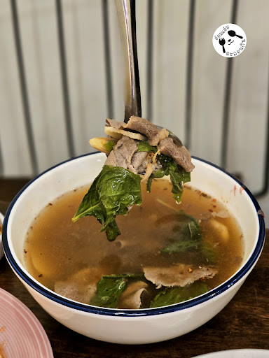 🐮 ต้มบ้านสิงห์ หมกใบพายสไลด์ 229- เมนูนี้จะมาราดซุปลงในถ้วยที่โต๊ะ น้ำซุปรสเข้มข้น รสเผ็ดกลางๆ เนื้อใบพายนุ่มไม่เหนียว