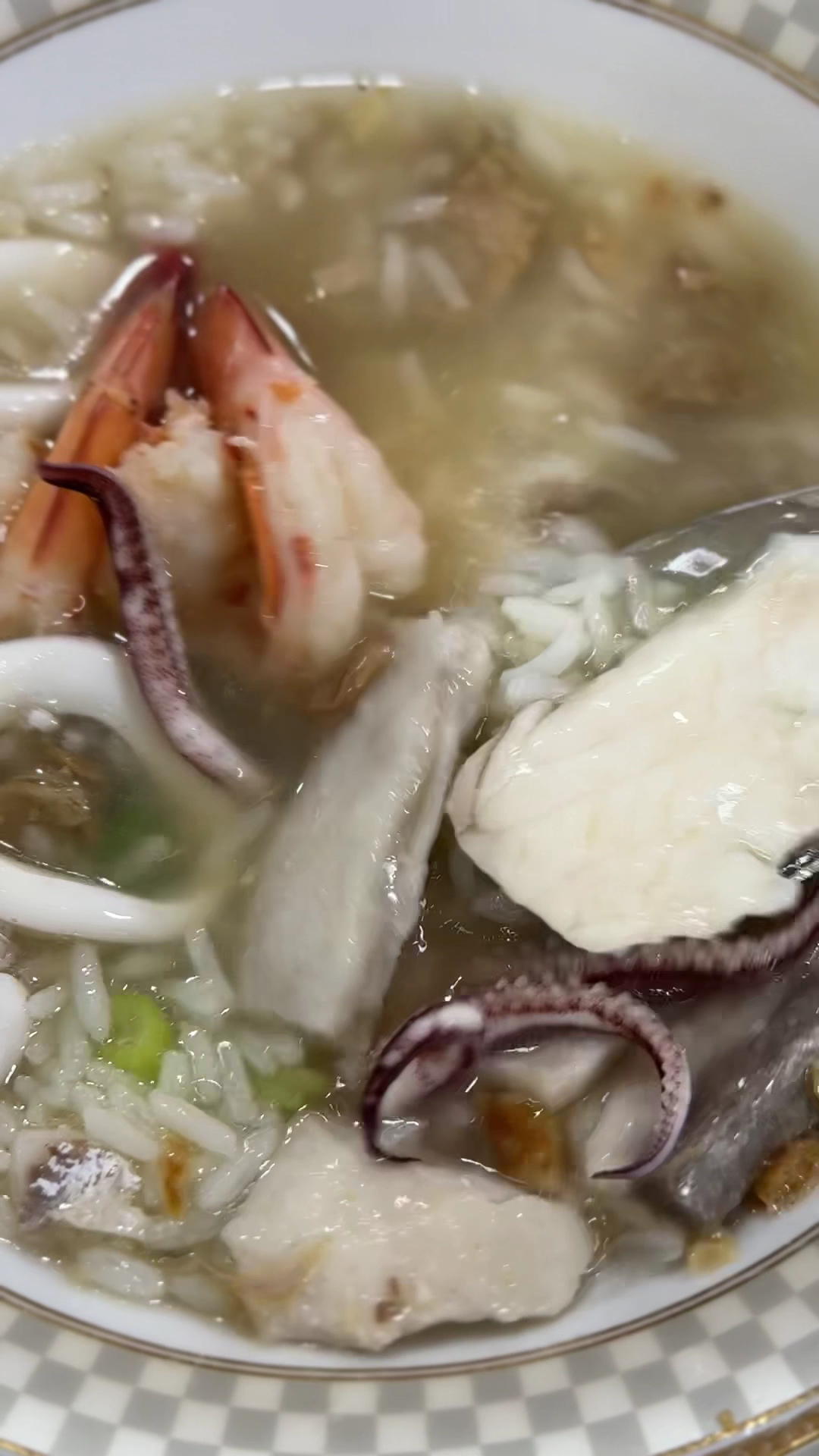 Adding an unexpected yet delightful touch were the small dried shrimps hidden within the porridge, lending an aromatic, briny undertone that subtly enriched the broth. The clear, delicately seasoned soup base served as the perfect canvas, enhancing the seafood's natural flavors while maintaining a light and refined profile.