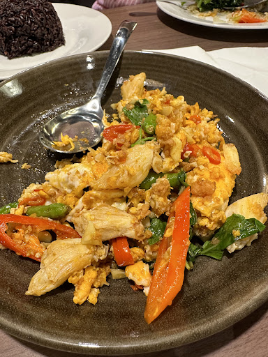 The food at Peppery Thai Bistro is simply amazing. The crab with eggs and chilli with basil is a standout dish that you won't find anywhere else. The combination of fresh crab meat, perfectly cooked eggs, and fragrant basil leaves creates an explosion of flavors that is simply irresistible. The beef with chilli basil is equally impressive, with tender beef strips perfectly cooked and coated in a savory sauce.