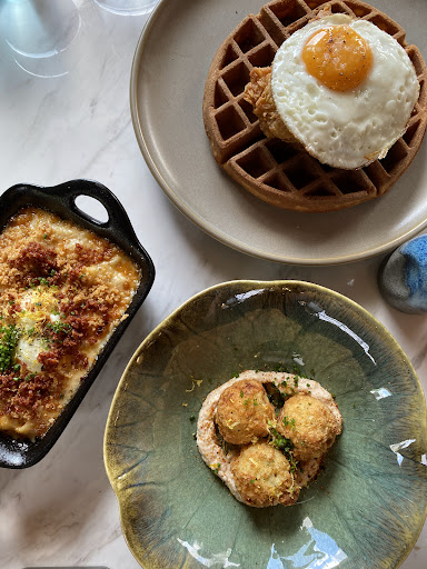 Super in love with this place! Such a gem located just a walkable distance from Sam Yot MRT station. The place has this vintage vibe with the perfect view to Wat Ratchabophit. The cafe/resto has 2 floors, the ground floor is basically a coffee shop and the top floor is more of a restaurant as they serve main dish as well. Seatings are plenty in both floors. But definitely if planning to eat, better to make reservations. And actually booking a table got us the best seats in the house which was just superb. Today, tried out several dishes. Crab Cakes with Taramasalat Sauce, the crab cake is so good and the tart sauce enhances its flavour. Macaroni & Cheese, it was so creamy and cheesy and got that perfect crust on the top. Classic Waffle Fried Chicken & Fried Egg, actually this one can be improved. The overall taste is just too salty and the syrup is too watery. For desserts, tried out the Lemon Meringue Tart which was so yummy. It got that firm crust, with a tart lemon filling also a creamy not too sweet meringue. Also got the Bomb Alaska which was a take on Black Forest. Again it doesn’t disappoint! For the drink, got the Iced Thai Milk Tea which is refreshing especially on a hot day. Overall an enjoyable experience, also service was quick & the team was...