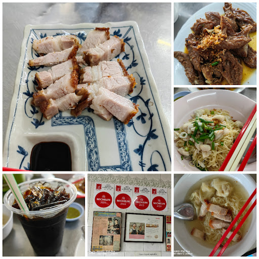 A Michelin recommended restaurant specialize in Wonton noodle. Place is pretty small, seating by stools and crampy. Restaurant reasonably clean but did spot fly around.Service is friendly and prompt.--4* The Signiture Wonton noodle has this clear,sweet and tasty soup. Noodle is thin and cooked al dante. The Wonton is tasty,skin can be more silky. The Char Siew is sweet and tasty. But the crab meat on dry version is pretty bland.--4.5* The roast pork has the crispy skin, meat is tender and delicious. Can be tad savoury and presentation can be more enticing.--4.5* The braised duck wings is too sweet to our liking,I think they fried it and braised so texture is not as tender.--3.5* The drink that resembles Black Coffee( Po Lian) is fragrant and nice,but it is on the sweet side.--4* Overall, a satisfying bowl of...