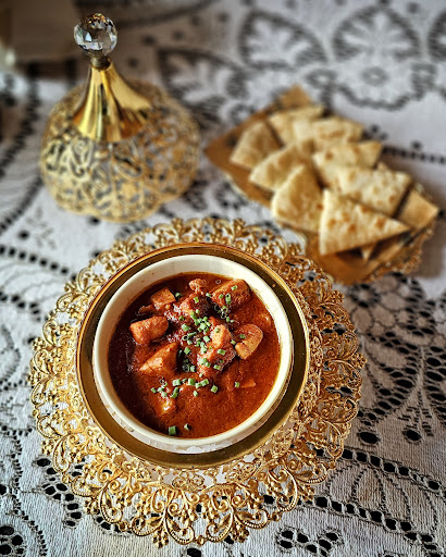 When I walked in, I saw grand columns and a big entrance that gave the place a historic feel. Inside, the colorful Turkish-style décor stood out, with lots of brass and copper teapots and decorations. Many women were excited to take selfies with the unique interior. Upstairs, there's a big space great for hanging out with friends, and you can even dress up in costumes for fun photos. The food was good. I tried a squid dish—called "Nasi Sotong"—which was very tasty and only 150 baht, a great deal for the setting. The masala with naan was also nice, though a bit too spicy for me. Even the utensils were beautiful. Overall, it was a fun and affordable experience, and there’s plenty of...