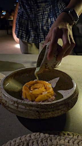 Menu highlights include a refreshing crab ceviche, creamy squid roe, and a bold beef tartare.