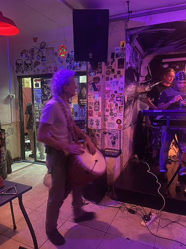 Hip restaurant & bar showcasing underground music, indie films & art exhibitions.