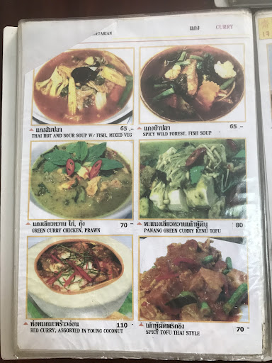 Read moreWe were so impressed with this small authentic vegan restaurant, some of the tastiest Thai food weâve tried. The menu is ridiculously huge and feels like an encyclopaedia. Mains start at 50 baht and thereâs a cheap lunch buffet as well. On both our visits we were amazed by how quickly the lady brought the food out, yet it was fresh, piping hot and packed with spice and flavour. We didnât try the lunch buffet, just ordered off the menu - green curry with steamed rice, pad thai, papaya salad and green curry chickân fried rice....