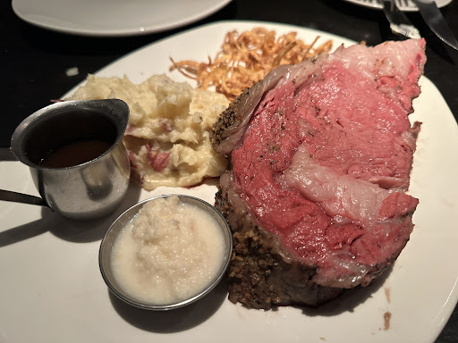 After we were seated, the waiter did approach us quickly and we informed him we were in a bit of a rush - so we ordered on the spot. We only ordered a Keg caesar and the 24oz prime rib to share. The bread and caesar came without a hitch. Now the prime rib - not sure if the waiting time felt like it was prolonged because we were in a rush, or if it really just take forever, but usually I don't wait 35 minutes between my appetizer and entrée. I was especially surprised because we did mention we were in a rush, and we could have ordered something simpler if we were informed that the kitchen was slammed / it would take a while for our entrée. We noticed other tables in our sections also looking impatient, and basically vacuuming down their food and getting the bill once it came. We waited 35 minutes for a delicious prime rib, but there were large sections of fat that we didn't touch so it felt more like an 18oz.