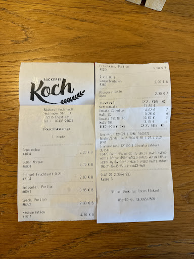 Zu Allem ist zu sagen, das wir Samstags gegen 10.30 Uhr eine sehr gut besuchte Backerei mit vielen glücklichen Menschen vorgefunden haben. Und auch wir haben uns sehr wohl und gut versorgt gefühlt! Daher ist die Bäckerei Koch nun fester Bestandteil, für kommende...