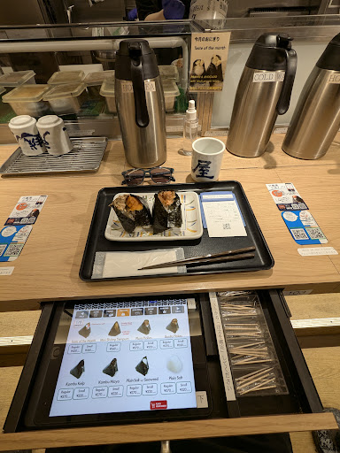 Read moreAmazing onigiri's, made fresh. The ones in the display are at a discount, which makes it an even better deal! I loved stopping by here and grabbing one or two onigiris for later, be for a busy walking day or a late snack. They are packed very nicely and held super well. Konbini onigiri's are mediocre, get the real deal here! Super worth the price! Best thing I did was loading 6 of them on my flight back home. Should have taken 8!