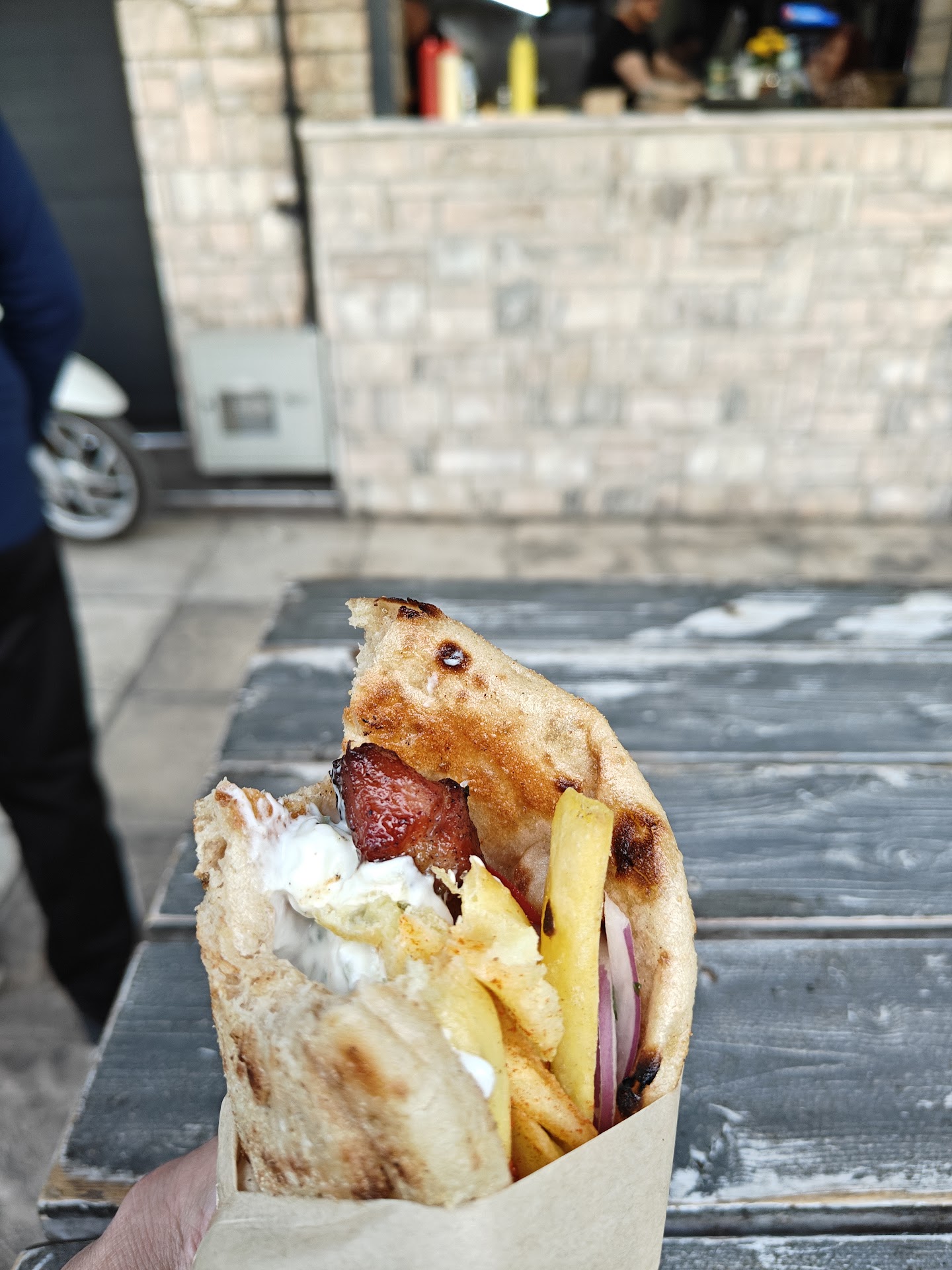 Read moreΠηγα απο αρκετα μακρυα να δοκιμασω αυτο το περιβοητο καλαμακι. Το αψητο δεν θα το σχολιασω καν. Πλεον για να μην στεναχωρουν τους πελατες και περιμενουν (τι λες?) τα βγαζουν ροζ τα κρεατα. Προσπαθουσα να καταλαβω απο ποιο κομματι του ζώου ηταν το κρεας. Μπουτι μια φορα δεν ηταν.Τοσο σκληροι χονδροι και τενοντες σε κατι ακανονιστα σχηματα κρεας πρωτη φορα ειδα.Ουτε καν λιπος να πω. Στο ιδιο καλαμακι ενα κομματακι μισο εκατοστο κι ενα κομματι 3 εκατοστα....πως να ψηθει σωστα ? Παλια λεει δεν ειχε delivery και γυρο....τελευταια απεκτησε...οποτε αυτο σε μενα λεει πολλα για την φθινουσα ποιοτητα στο βωμο του κερδους. Και το καλυτερο, σε καιρο πανδημιας, οι 2 ψηστες φορουσαν απο ΕΝΑ γαντι (το αλλο χερι γυμνο, δεν ξερω για ποιο λογο) μασκες κλασσικα στο στομα....και το big boss ουτε μασκα ουτε γαντια....και γυριζε και κανα σουβλακι που και που μην καει. Κριμα για τοσα...