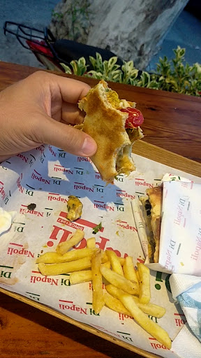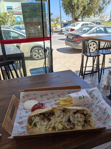 Really good Italian inspired Tunisian Cuisine. I got the DiNapili ciabatta sandwich because the spicy style wasn't available. The regular had a bit of spice so it wasn't disappointing. It was topped with Harissa, Mayo, grilled vegetables, lettuce, tomatoes, and toasted. Came with fries on the side.