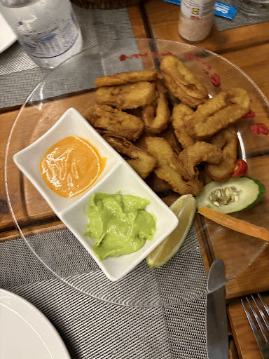 Read moreAccueil pas terrible, juste ni bon ni mauvais pour commencer. Passons, le restaurant à l’air sympa et la vue est magnifique ! On nous installe puis on nous amène la carte et une bouteille d’eau plate. Pas le temps d’en demander une pétillante… passons, y’a pire dans la vie. La carte, pas extraordinaire mais bon, certains plats on l’air mangeable, presque appétissant, mais sans plus… passons et soyons magnanimes, ce n’est pas non plus une horreur! Bref, nous nous décidons ma femme pour une assiette de lotte cuisinée en sauce, moi du poisson grillé (selon la carte « tranche de poisson grillé », sinon il faut prendre un poisson entier grillé, et vu la taille des spécimens je n’en serai pas venu à bout seul en moins de 3 ou 4 repas, à moins de prendre une dorade miniature et seule sur le présentoir, la j’aurais eu faim). Pas de chance, nos premiers choix ne sont pas disponibles, mais bizarrement nos autres choix non plus, le serveur se fait insistant en essayant de forcer la vente sur les propositions les plus chères de la carte! Nous finirons par demander 2 bricks et une petite assiette de calmars grillés. Et paf!!! Pas de bricks! (Même dans mon frigo de petit français basique j’ai de quoi en faire, c’est fou!) comprenant que toute cette histoire commence à nous énerver, le serveur accepte de demander les bricks en cuisine, tient donc, c’est bizarre, maintenant c’est possible ! Bref, nos assiettes arrivent, 1 bricks thon et 1 crevettes commandés, 2 bricks thon livrées… passons, on a faim et sommes pressés de partir d’ici! Cerise sur le gâteau, la brick de ma femme repart en cuisine, l’œuf dedans n’était pas cuit du tout contrairement à celui dans la mienne! Ça continue… l’assiette de calmars arrive, servi avec quelques frites pas mauvaises! Mais quel dommage de servir un plat si fade! Pas d’herbes, pas d’épices, rien! Juste du calmars en lanières grillées… Pour finir, 2 cafés et on s’en va! Personne n’y croira, ce furent les meilleurs expresso que nous ayons bu depuis 3 jours. Pour le reste, la nourriture de notre formule all-inclusive a l’hôtel est tellement meilleure que ces 3 entrées qui nous ont coûté 72 dinars. Certes ce n’est pas excessif, mais ce restaurant ne les vaut...