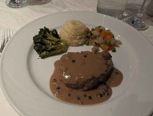 The mains was fillet steak, very good cut off meat, sides were nice but nothing to write home about, could have done with a bit more sauce.